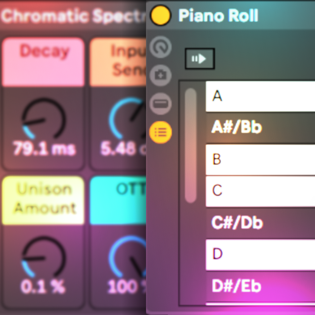 Ever wanted instant color bass on anything without having to vocode at all? Chromatic Spectrum is perfect then! Just plug it onto literally anything you want and it becomes colorful! The chord is D# Minor by default, but you can change that super easily by enabling and disabling different keys on the piano roll. Yes I made a piano roll in an effect rack it's kinda scuffed but it works.